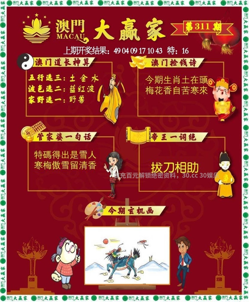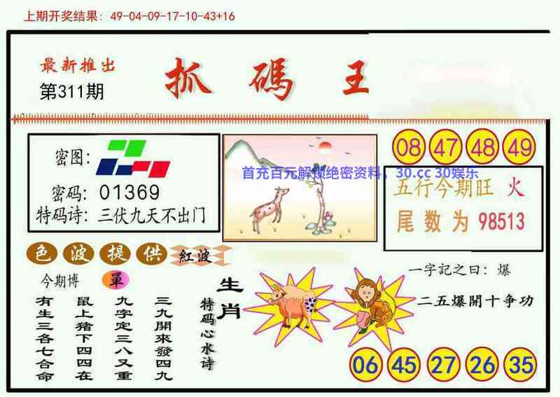 | 306期:绝杀半波╠红双╣开:牛17准 |