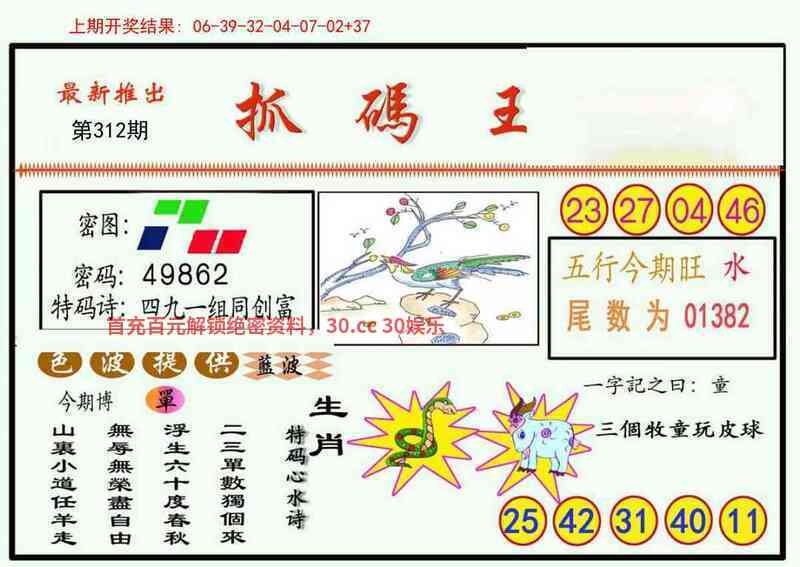 | 311期:三行生肖╠火金水╣开:蛇37准 |